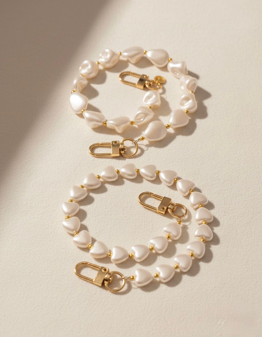 De parels kun je dragen los van of samen met de gouden ketting van je telefoonkoordje perfect om te combineren en je eigen stijl te laten stralen.